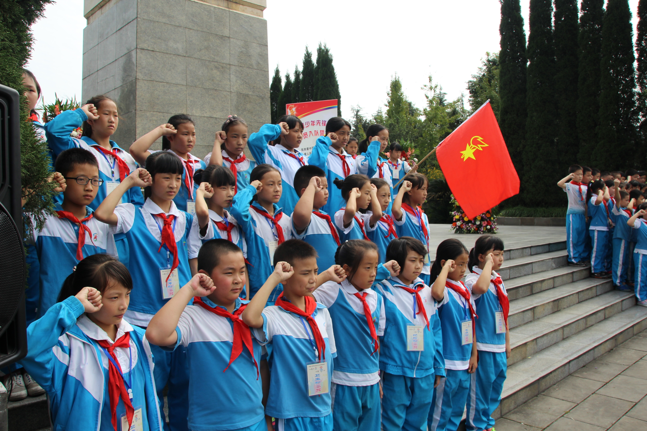 在庄严肃穆的烈士纪念碑前,少先队员代表为烈士敬献花篮,声情并茂地讲述少年英雄王二小的故事,齐唱嘹亮高亢的《少年先锋队队歌》来缅怀先烈。学校一年级60名小朋友在烈士碑前,戴上了鲜艳的红领巾,成为了一名光荣的少先队员。面对革命烈士纪念碑,新老队员一起宣誓、齐唱队歌,展现了少先队员的光荣和自豪,也激励队员们继承和弘扬革命烈士的光荣传统,好好学习,报效祖国。